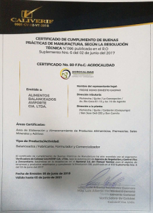 AVIFORTE cuenta con el certificado por parte de Agrocalidad desde sus inicios, cumpliendo cada año con los requisitos de esta agencia. Para ver más respecto a este certificado y más información visite la página agrocalidad.gob.ec